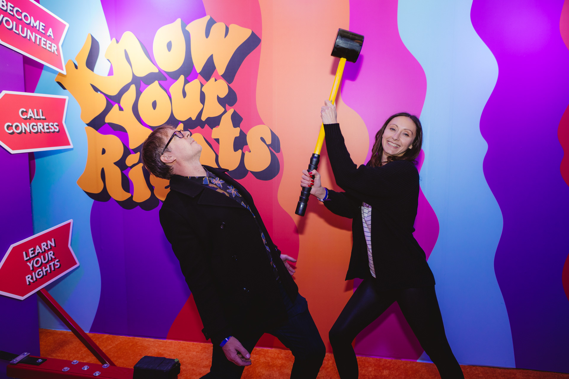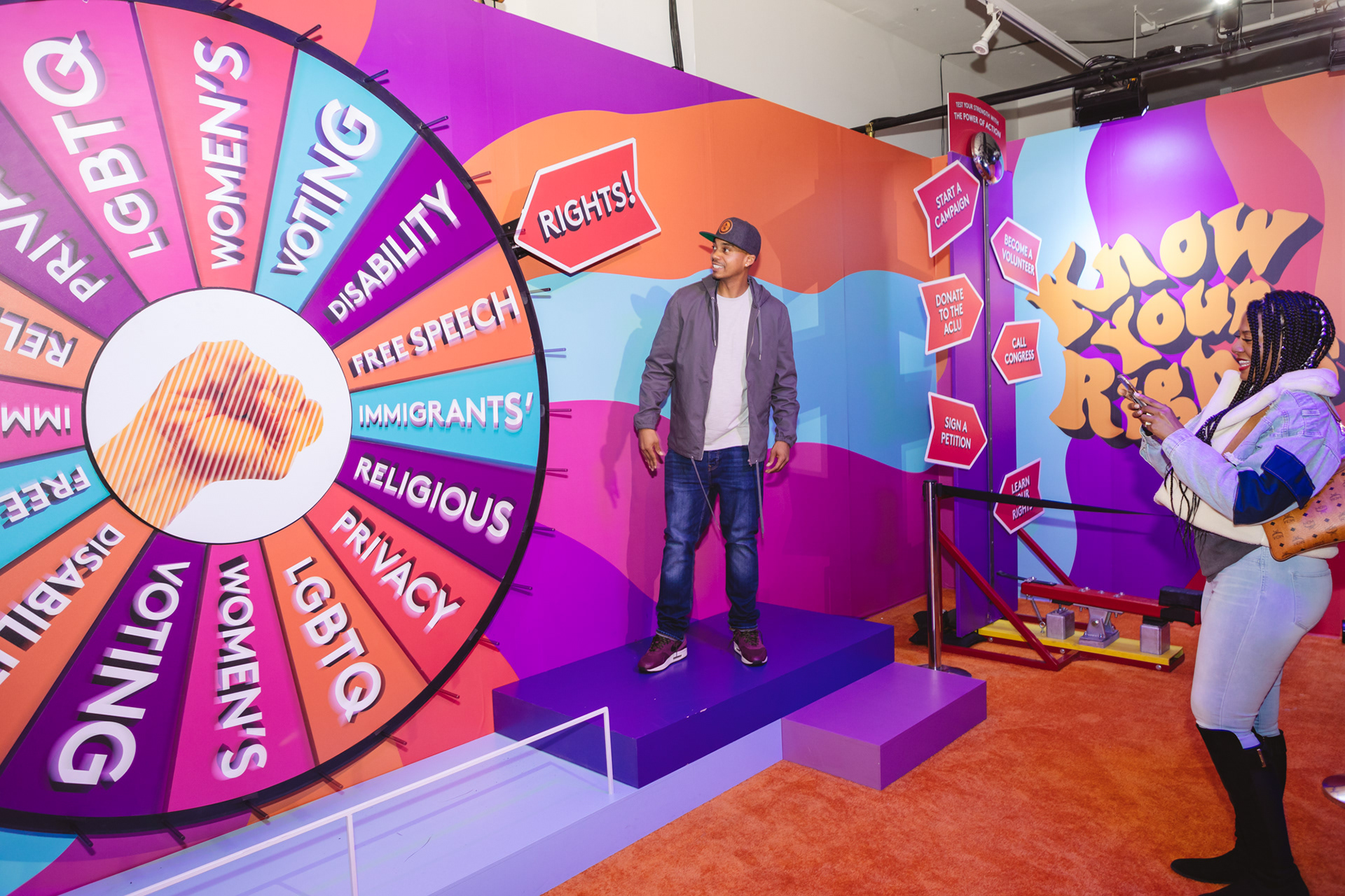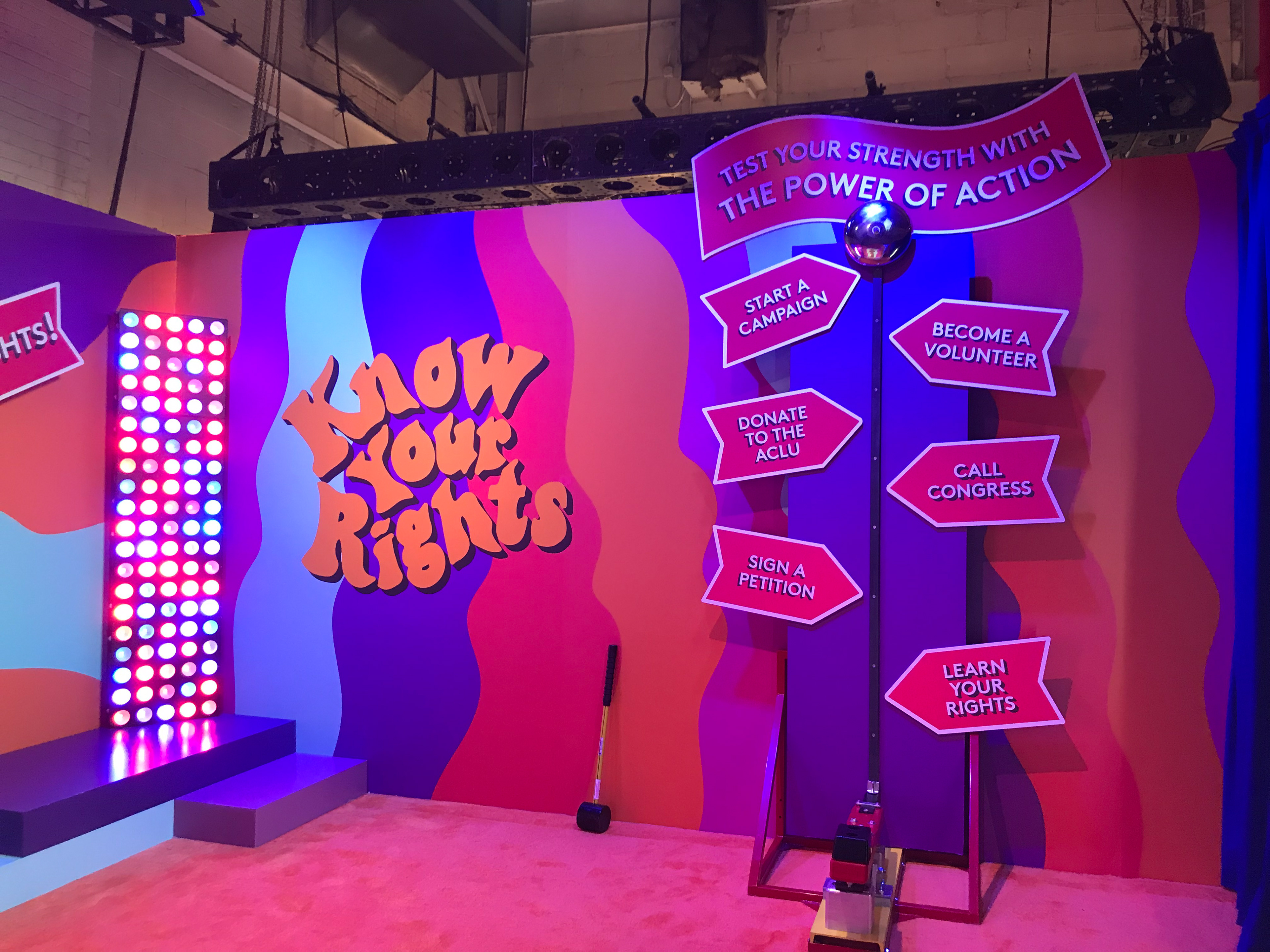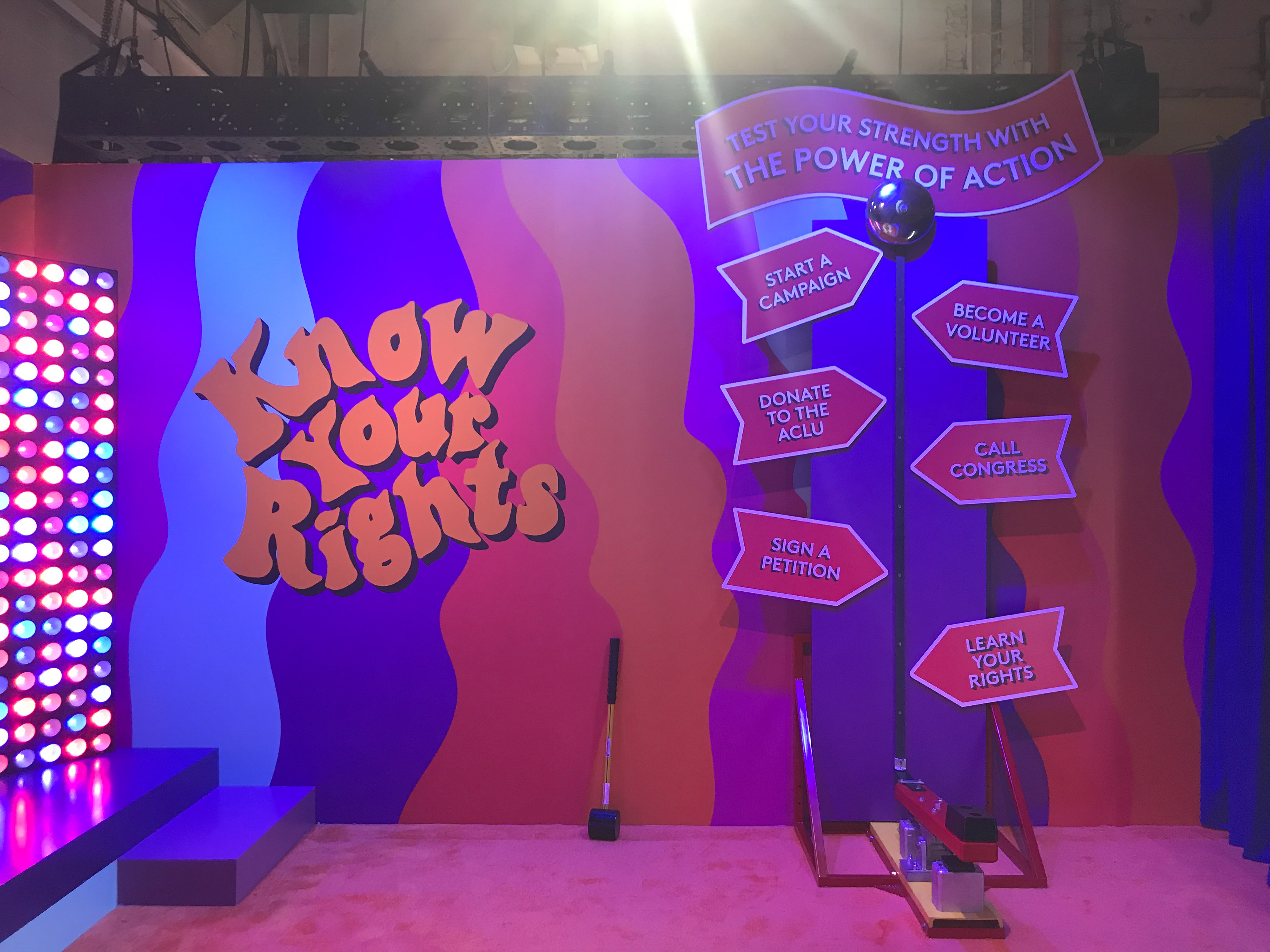 I did all the branding and graphics for this room. Dedicated to educating guests about their rights through The ACLU. Spin the wheel, peel the sticker and learn about your civil rights!