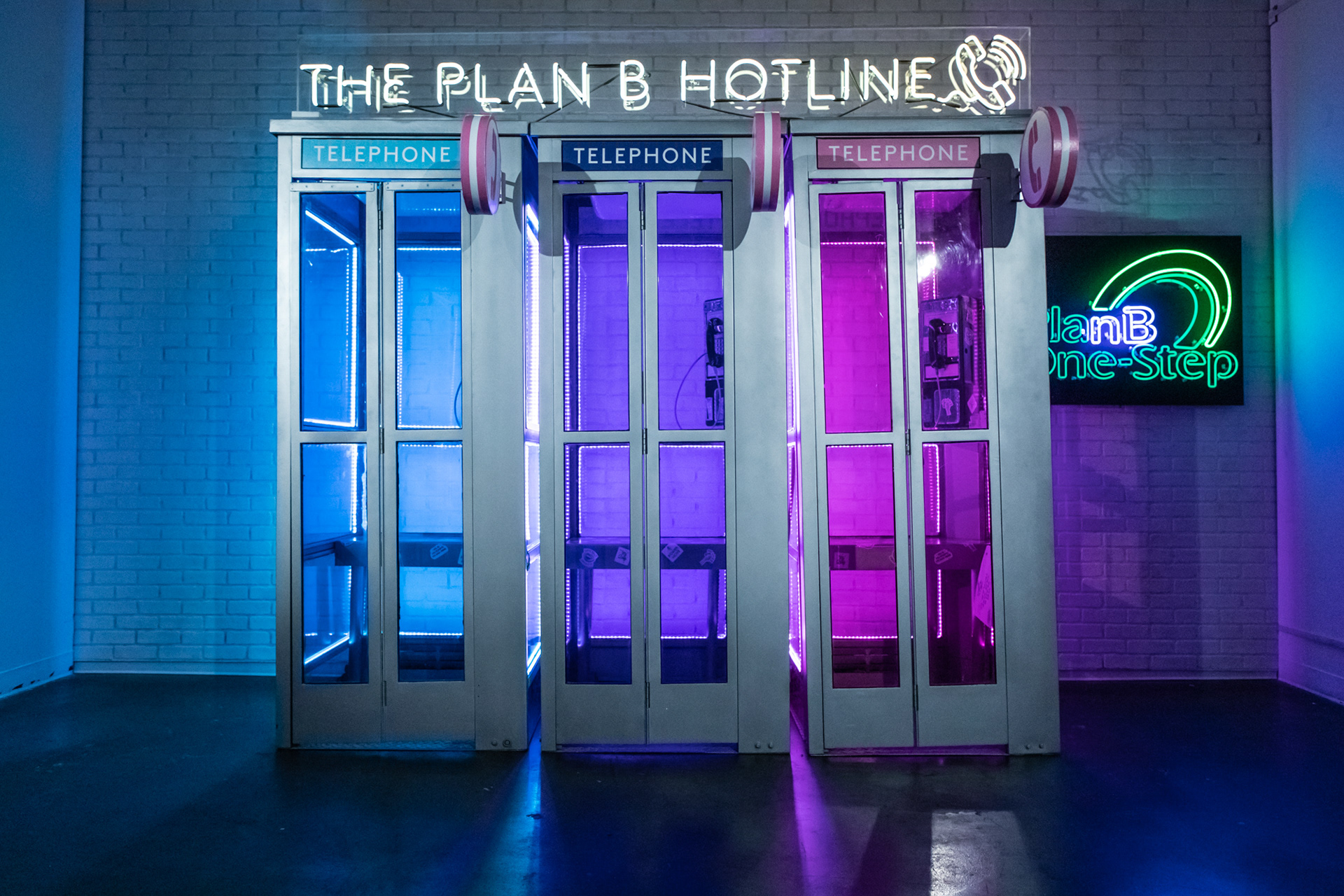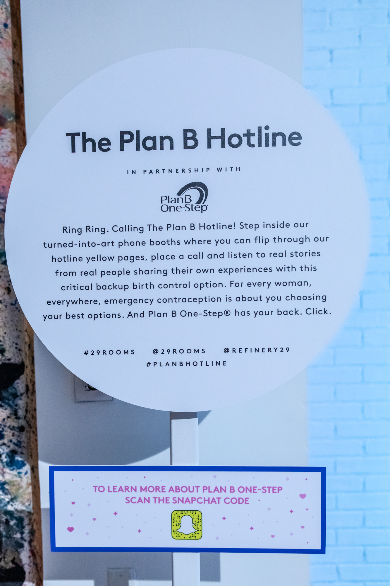 Graphics & Branding for Plan B 'Hotline' at Refinery 29's 29Rooms. I designed a real working telephone that dialed into real human narratives and experiences around the pill.