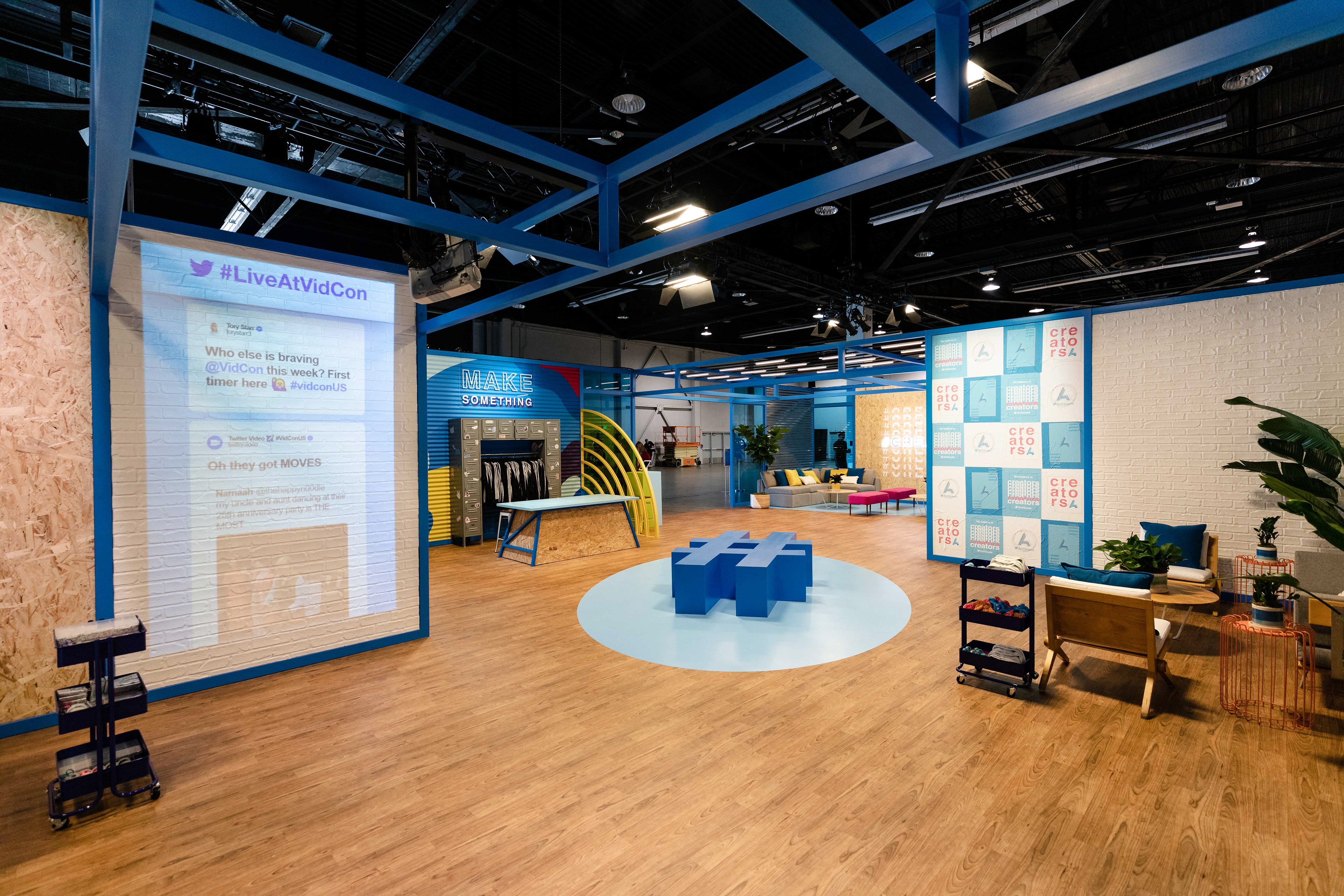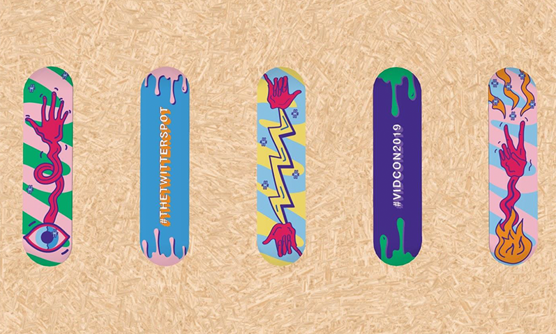 Agency: N/A Collective, Role: Senior Designer. 3D Designers/Directors: Margo Puette, Kristina Soteri Created and designed graphics/mural and some illustrations for Twitter's VIP lounge at VidCon 2019.